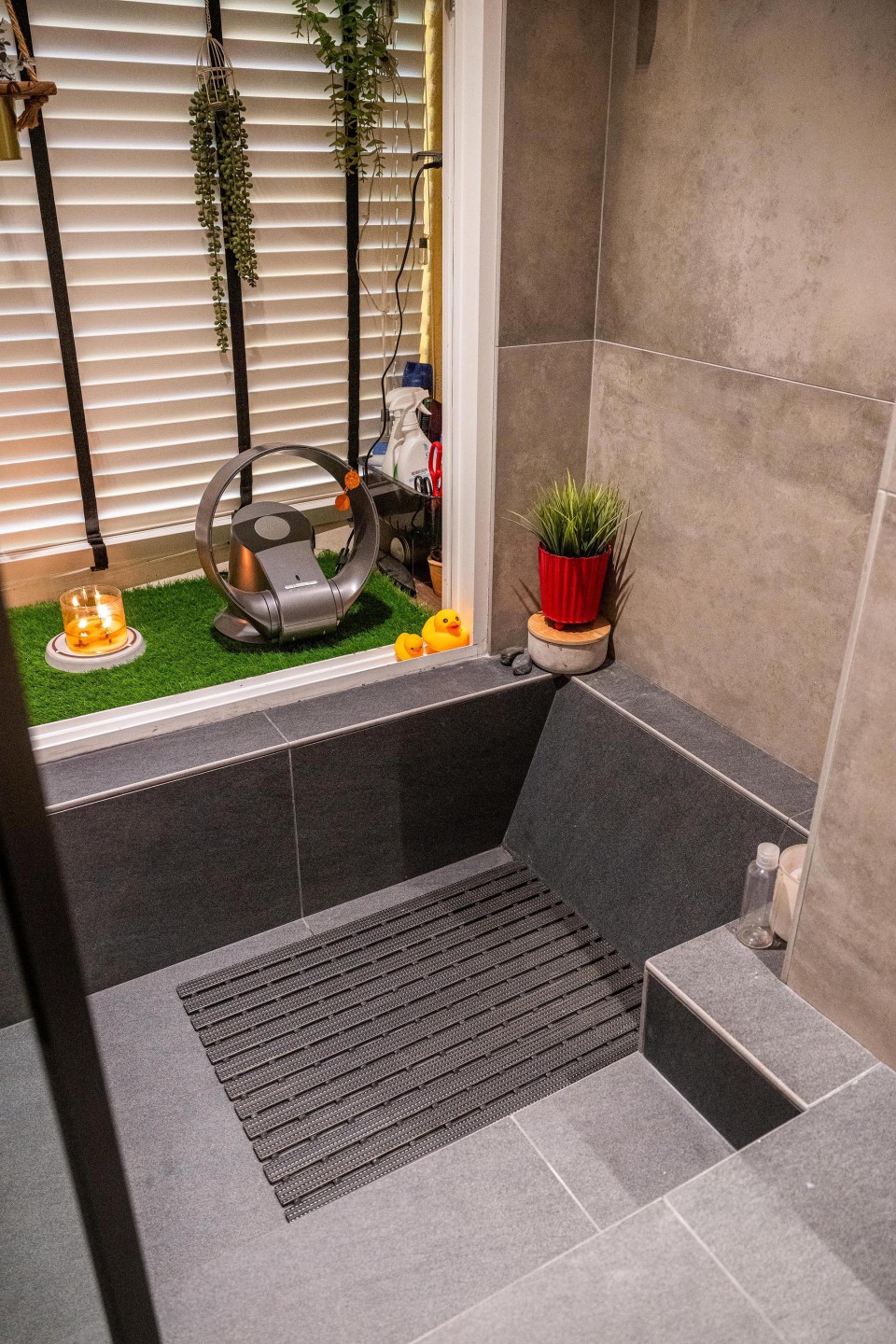 Lilian’s interest in styling and greenery was also carried into the bathroom, where the existing sunken bath became a natural feature to build around. Jonas made use of the wall niches by adding shelving for plants and decorative ornaments.
