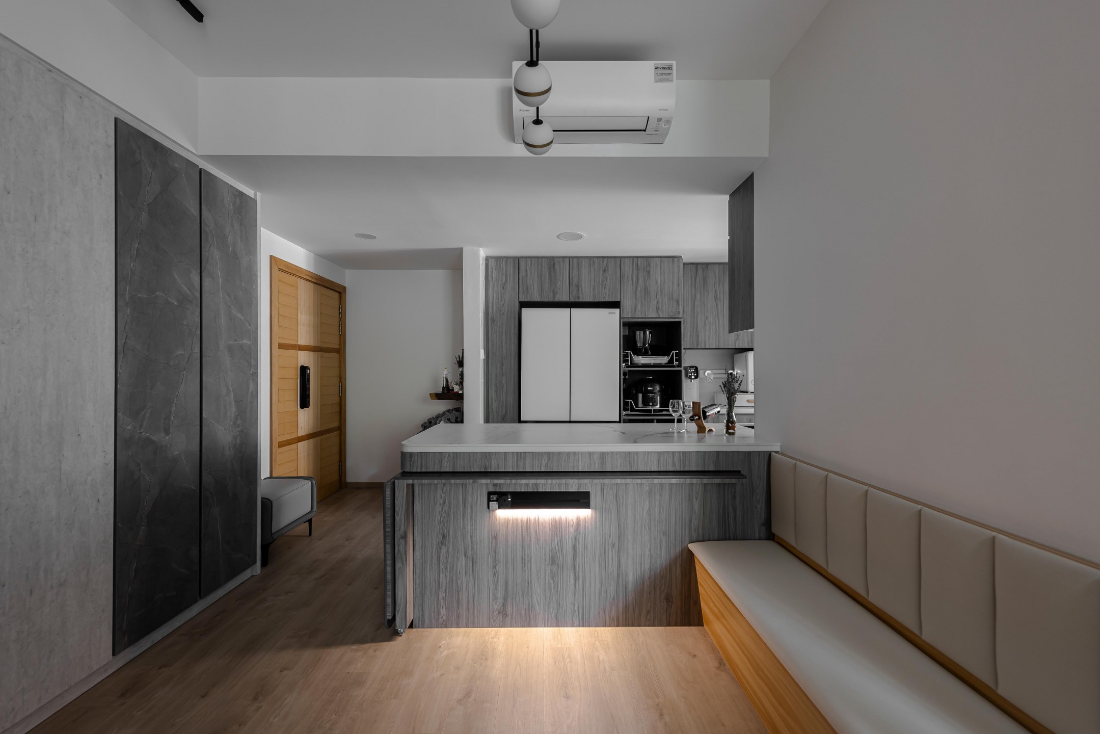 Another space-saving feature is the retractable dining table, an idea Kelvin picked up from social media. With a lively toddler at home, the ability to free up space for playtime was too tempting to pass up. Once he shared the concept with Colin, they took it a step further.