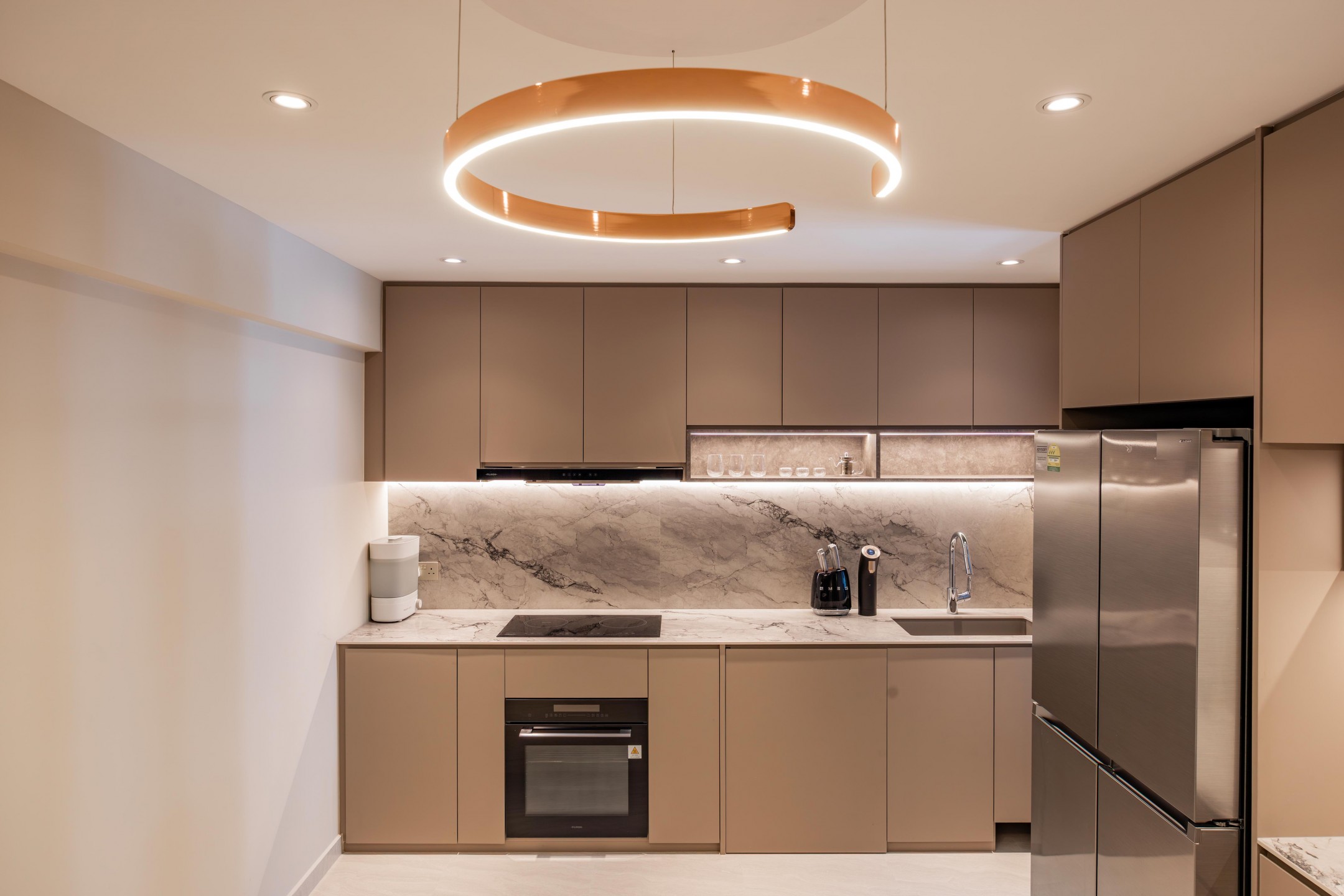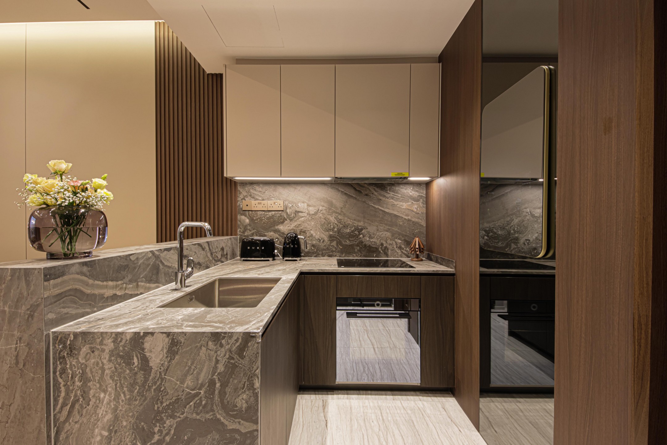 Designed as the heart of the home, this kitchen balances functionality with refined luxury using clean lines, layered finishes, and a calm, cohesive palette.