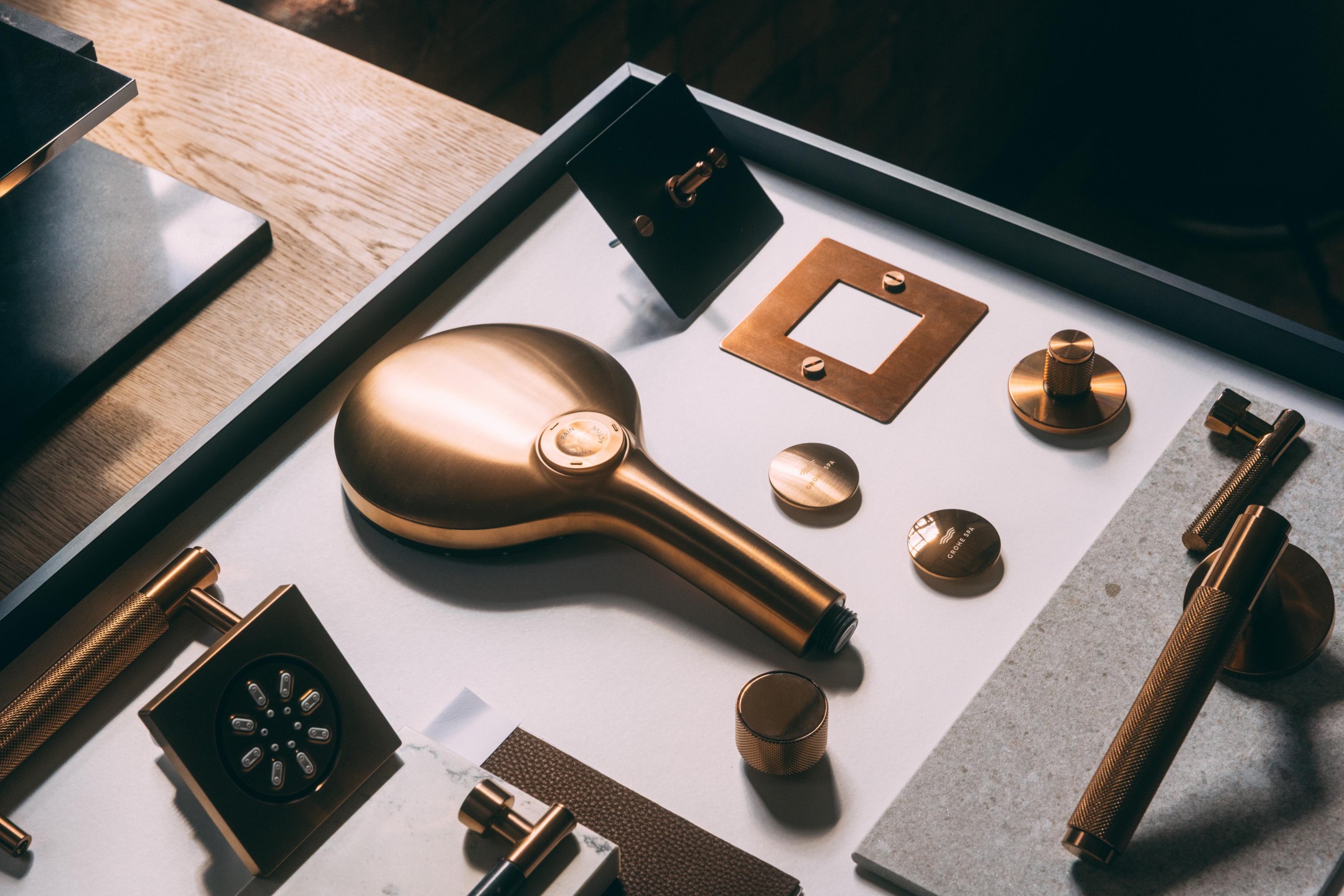 A bathroom becomes more nurturing when every touchpoint carries intention. In this collaboration, Buster + Punch’s distinctive knurled detailing brings sculptural tactility to hardware elements such as handles, switches, and lighting, while GROHE SPA complements this with forms crafted to deliver a refined and considered experience. Together, these small but meaningful interactions create a heightened sense of presence in daily routines, allowing the bathroom to feel more considered and quietly expressive.