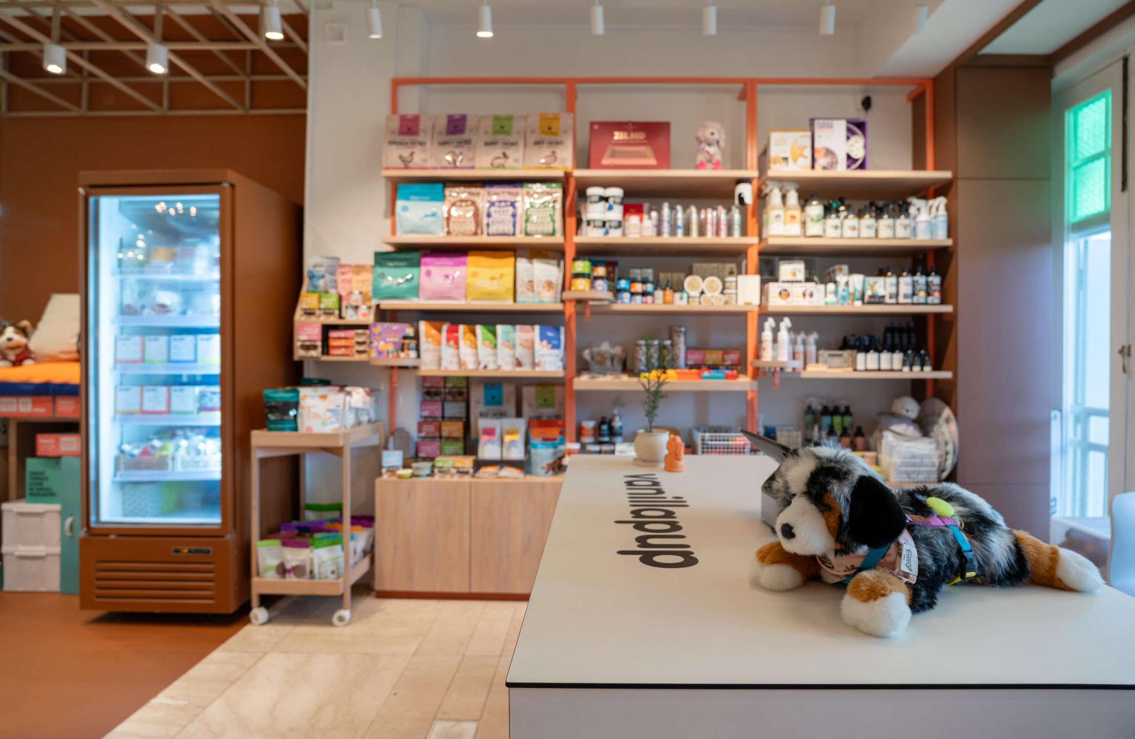 Inside, visual merchandising takes centre stage. Products are given space to breathe, allowing everyday pet essentials to be perceived as lifestyle objects rather than just functional items. Layered materials and tonal contrasts introduce warmth and depth, balancing playfulness with a sense of refinement.